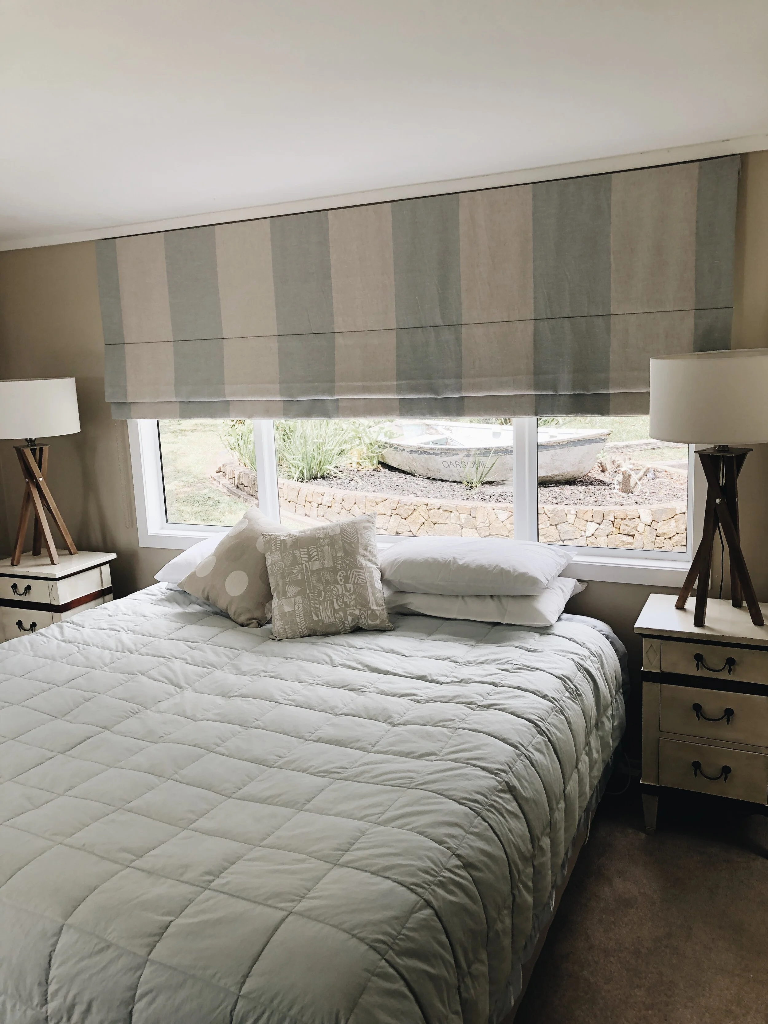 Roman blinds are timeless. They are simplistic, practical and look great. You can create your romans in matching or complimentary fabrics to your drapes. On windows with little to no stacking space either side, you are best to have your window covering go up rather than across. Romans also look great on picture windows or windows above beds.